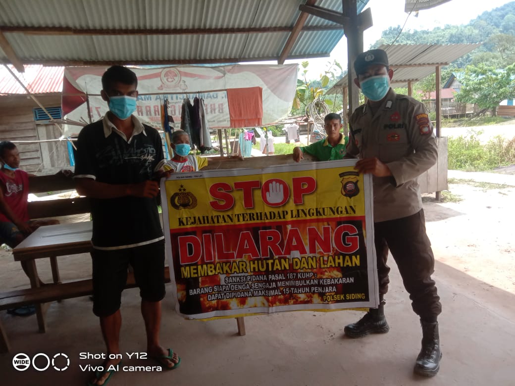 “Mari kita bersama menjaga kelestarian hutan dan lahan dengan tidak membakarnya karena dampak dari karhutla menyebabkan timbulnya asap yang dapat mengganggu kesehatan serta aktifitas masyarakat lainnya dan sudah ada Sanksi bagi Pelaku yang sengaja membakar hutan dan lahan”, himbau Bhabinkamtibmas Polsek Siding Bripka Barto.