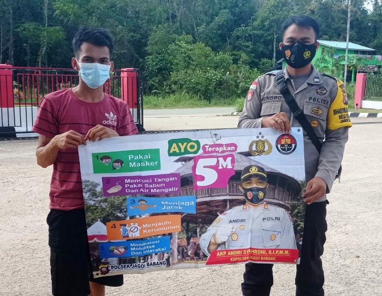 polres bengkayang,Polsek Jagoi babang-Brigadir hendro saat mengunjungi desa binaannya melakukan sosialisasi dan menyampaikan edukasi untuk mencegah penularan virus covid 19