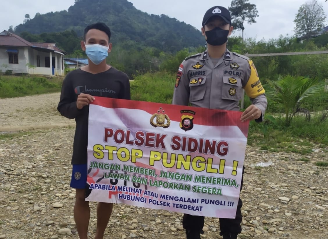 Melalui banner Bripda Harris menghimbau kepada masyarakat di wilkum Polsek Siding, desa Sungkung 1 diselingi dengan pesan kamtibmas, yaitu sesuai Peraturan Presiden nomor 87 Tahun 2016, laporkan kepolsek terdekat apabila menemukan praktek pungli”ucapnya”.