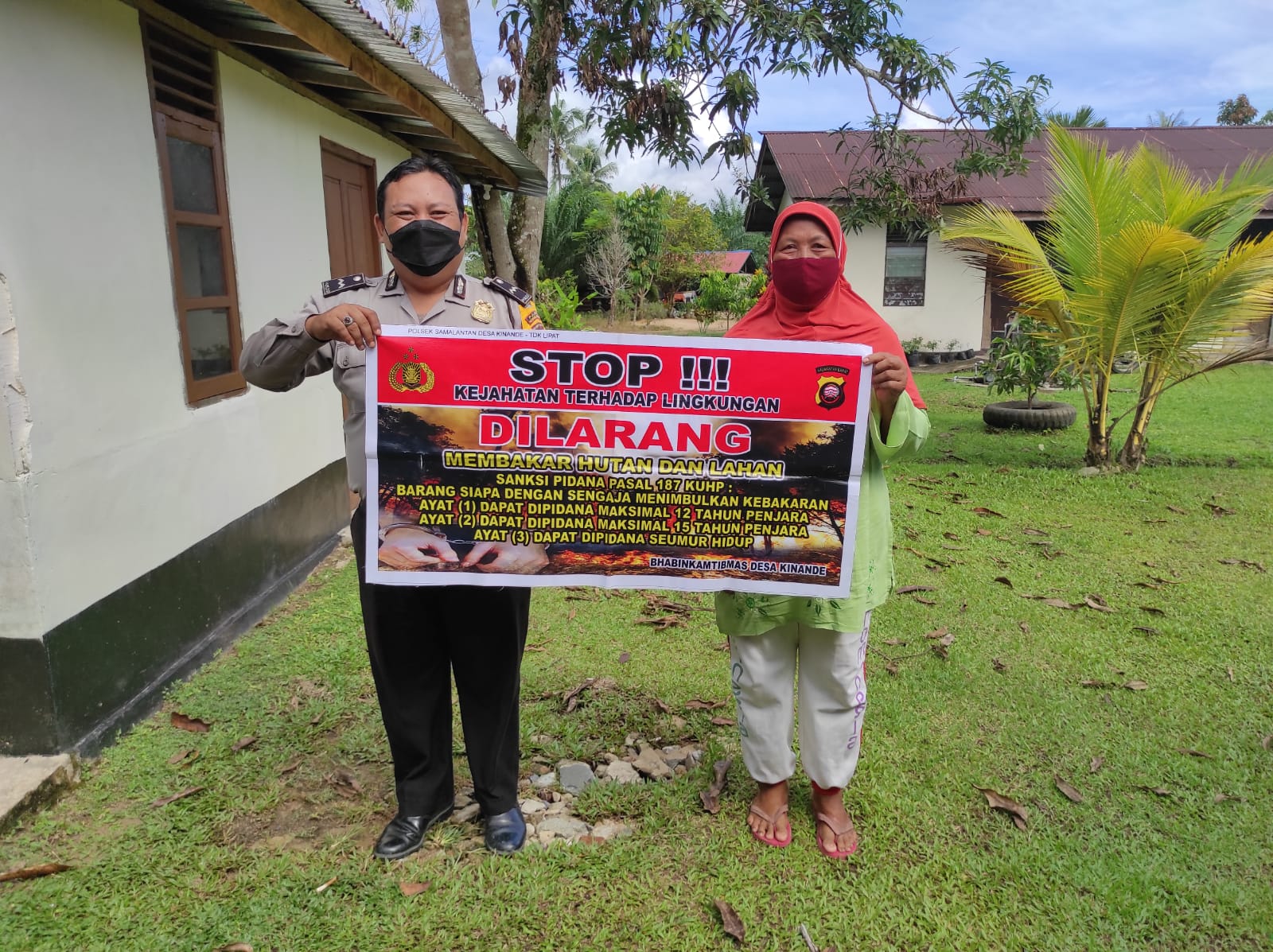 Dengan menggunakan spanduk, masyarakat diimbau untuk tidak melakukan pembakaran hutan maupun lahan serta mengajak warga untuk bersama mencegah terjadinya karhutla.