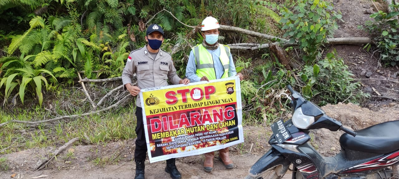 “Adapun imbauan oleh Kapolsek Siding Ipda Bambang Rudiyanto, diantaranya yaitu pertama dilarang membakar hutan dan lahan, dilarang membuka lahan dengan cara dibakar, mari kita jaga kelestarian hutan, dan mari kita cegah bersama kebakaran hutan dan lahan” ungkap Kapolsek Siding.