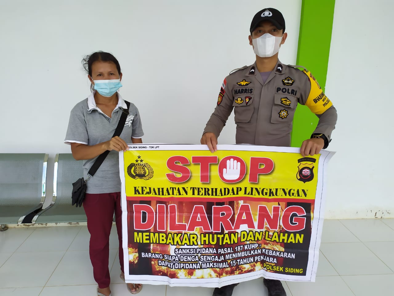 Salah satu upaya Polsek Siding yang dilakukan adalah mengajak dan mensosialisasikan Imbauan Kapolsek Siding tentang karhutla lewat spanduk yang dibentangkan bersama warga.