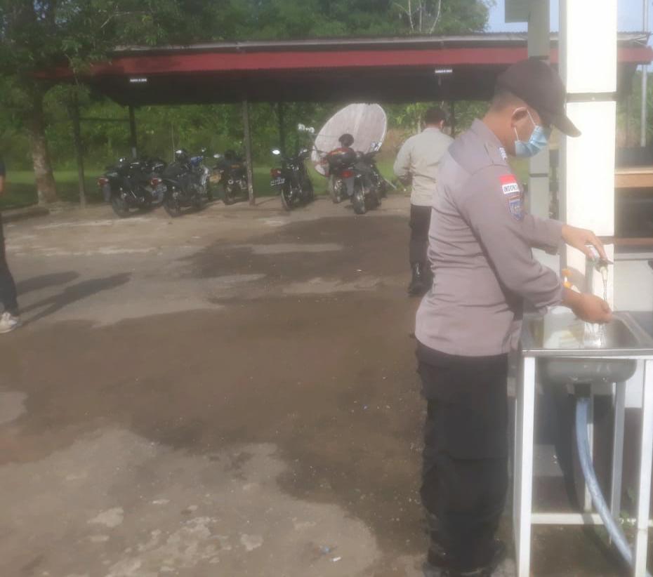 Mencegah dan mengantisipasi penularan virus covid 19, Personil polsek jagoi babang menerapkan protokol kesehatan untuk mencegah terjadinya penularan yaitu dengan rutin mencuci tangan pakai sabun serta tetap disiplin menerapkan protokol kesehatan