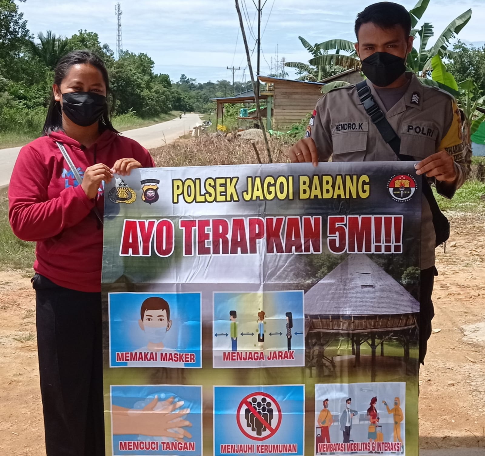 polres bengkayang,Polsek Jagoi babang-Bripka hendro lakukan sosialisasi prokes 5M kepada warga dan mengimbau agar warga tetap disiplin dalam menerapkan prokes 5M agar tidak terjadi penularan covid 19