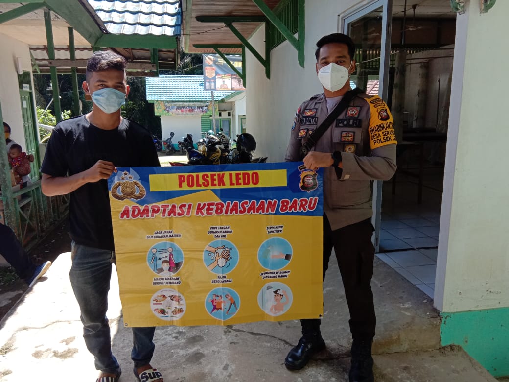 Bhabinkamtibmas Polsek Ledo Untuk Desa Serangkat Bripda Ega Diamanta Menyambangi Warga Binaannya Sampaikan Himbauan Kamtibmas Dan Sosialisasi Adaptasi Kebiasaan Baru; (Sabtu, 26/06/2021).