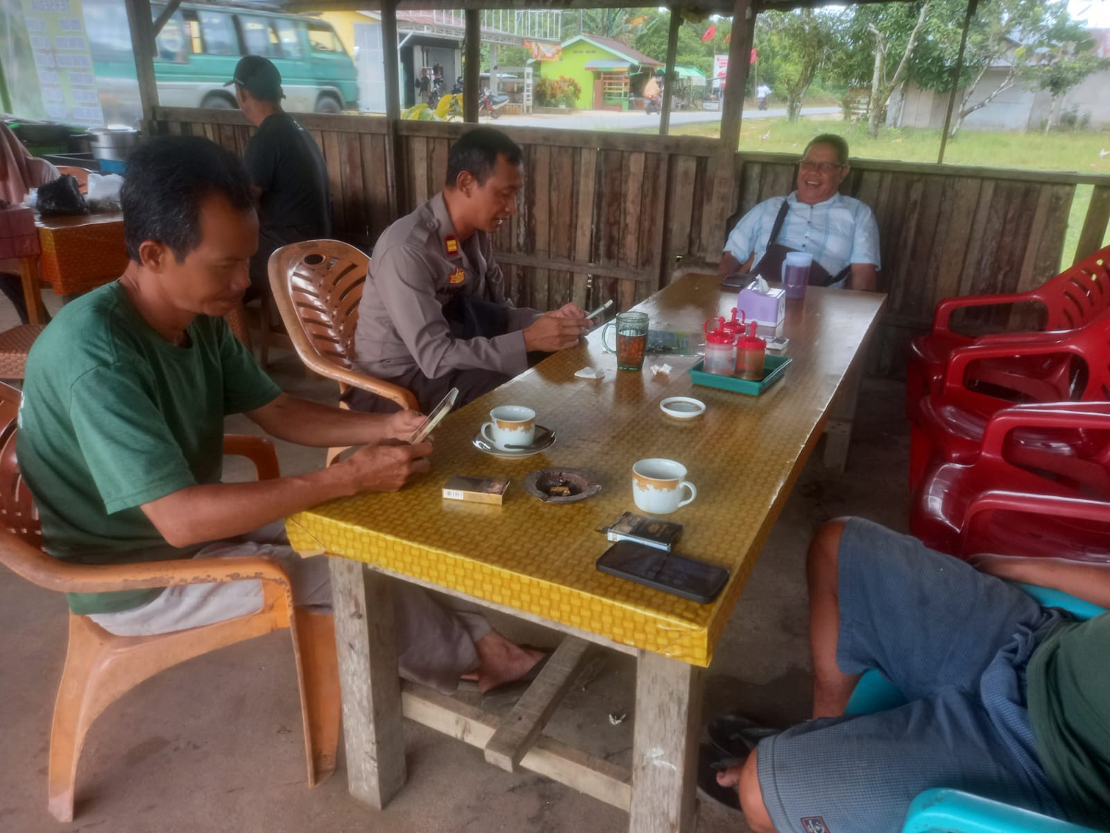 Polsek Monterado Polres Bengkayang Polda kalbar dalam kegiatan “Minggu Kasih” dengan Melakukan sambang dengan cara ajak masyarakat ngopi.