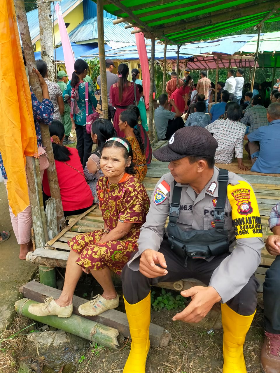 Personel Polsek Siding Polres Bengkayang Polda Kalbar hadir memberikan pengamanan secara humanis Gereja Santo Fransiskus Asisi kecamatan Siding Kabupaten Bengkayang.