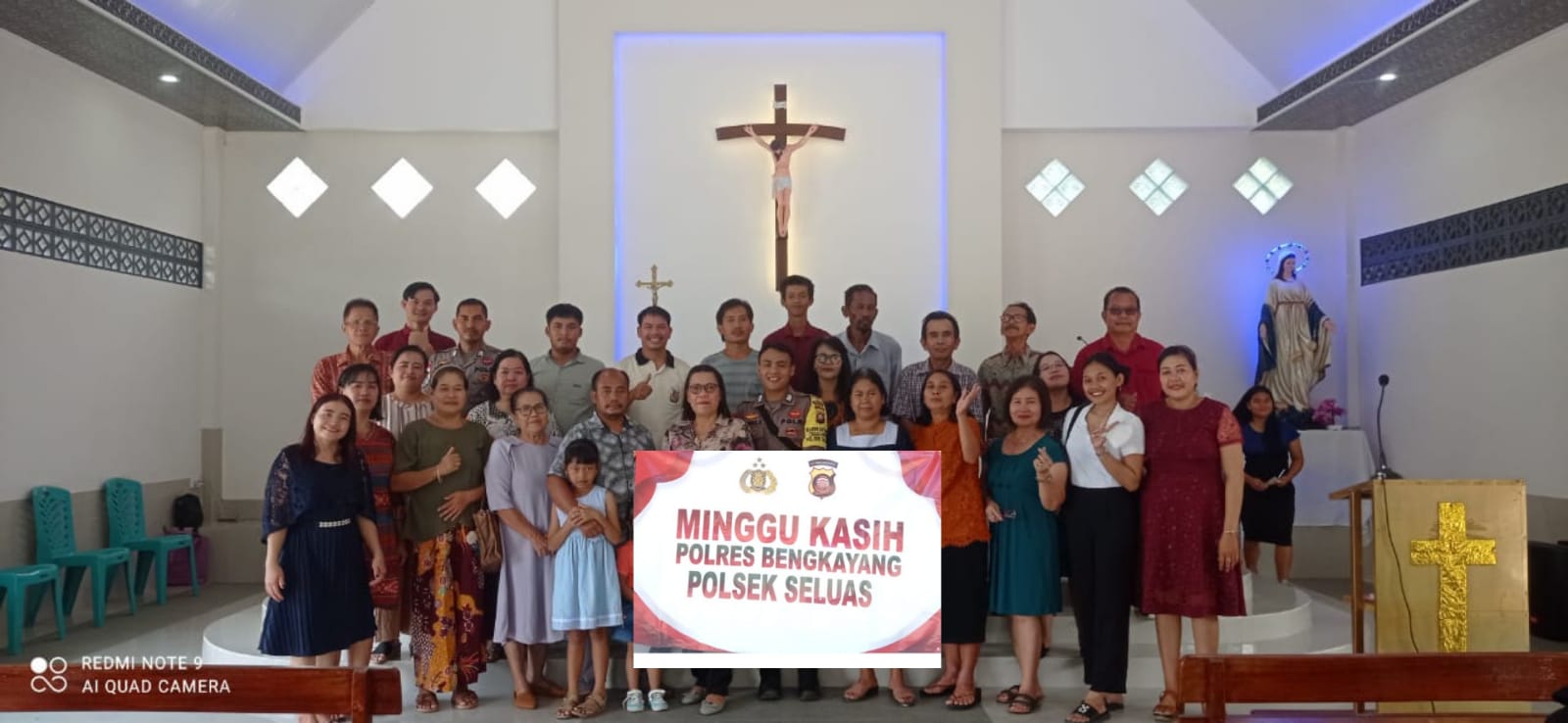 Polres Bengkayang – Piket Jaga Regu 1 Polsek Seluas melaksanakan Kegiatan Minggu Kasih, pengamanan dan monitoring ibadah misa di Gereja Katolik Santo Rafael Seluas, Minggu (17/9).