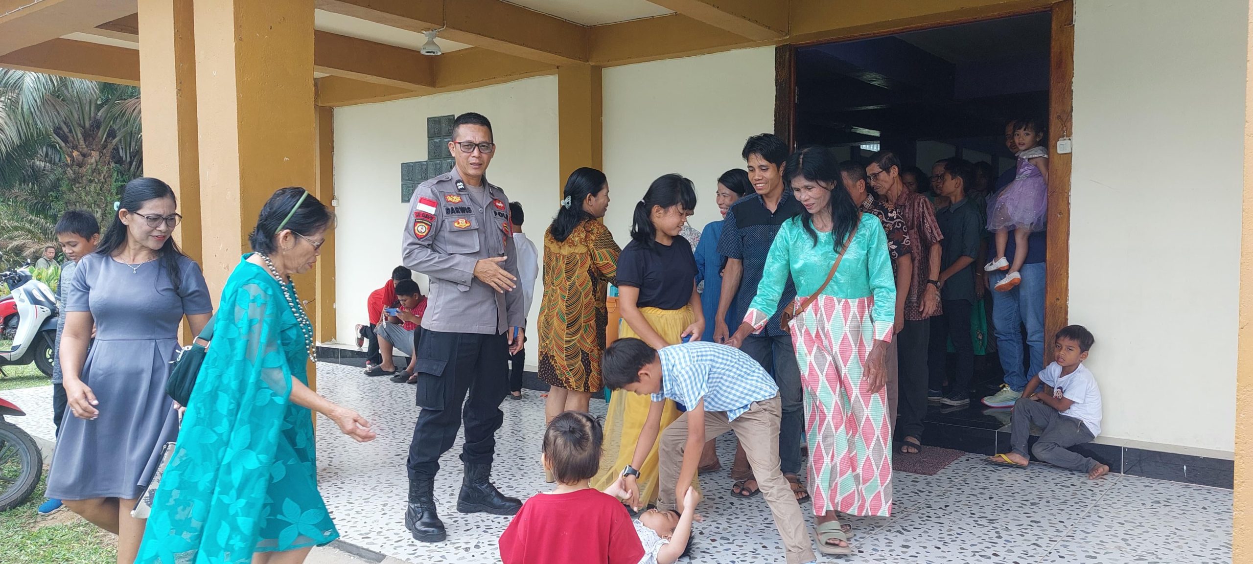 Polsek sungai betung mendengarkan masyarakat melalui kegiatan Minggu Kasih, Kegiatan itu berlangsung di Gereja PIBI REHOBOTH sungai betung, Minggu (16/02/25).