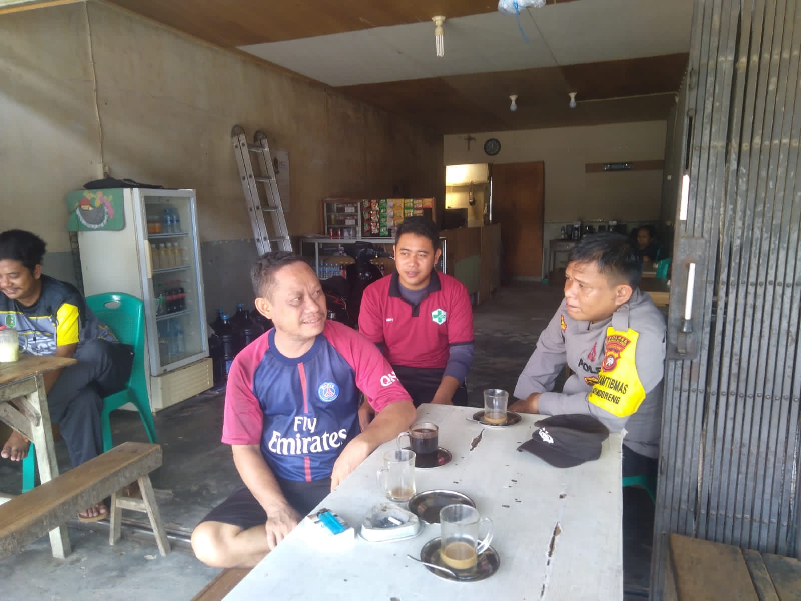 Polsek Monterado Polres Bengkayang Polda kalbar dalam kegiatan “Minggu Kasih” dengan Melakukan kegiatan sambang kepada warga saat berada di warung kopi.