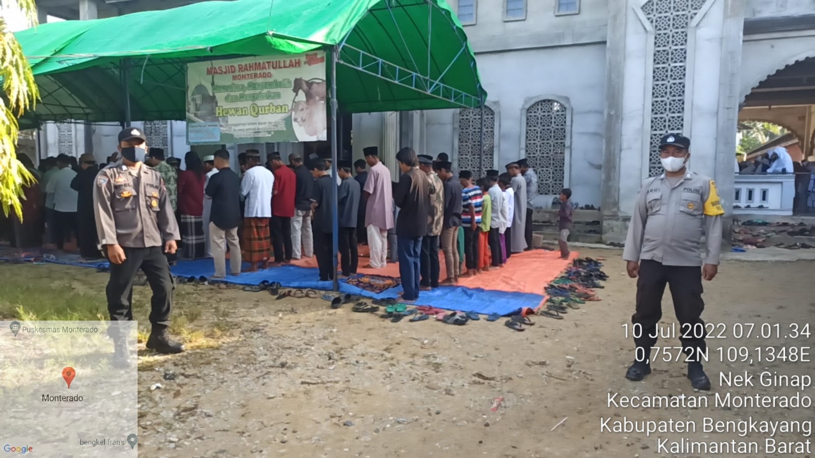 “Kita sudah memploting personel pada masjid yang melaksanakan ibadah sholat Idul Adha yaitu Masjid Rahmatullah Desa Monterado dan Masjid Al- Amin Desa Gerantung kecamatan Monterado Kabupaten Bengkayang, “Dengan adanya kehadiran polri di tengah masyarakat di harapkan bisa memberikan rasa aman dan kelancaran pelaksanaan Sholat Idul Adha”.ucap Kapolsek Monterado.