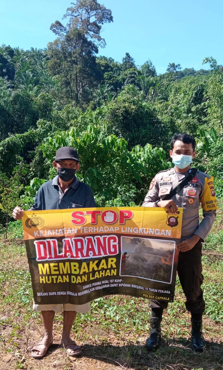Polsek Capkala – Polsek Capkala Polres Bengkayang Polda Kalimantan Barat terus gencar mencegah kebakaran hutan dan lahan dengan cara melakukan patroli dialogis dan sosialisasi serta memberi himbauan kepada masyarakat tentang larangan dan bahaya membakar hutan dan lahan. Kamis, (18/08/2022).