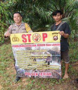 Polres Bengkayangโ€“ Polsek Teriak, Anggota Bhabinkamtibmas Polsek Teriak terus melakukan upaya pencegahan terjadinya kebakaran hutan dan lahan (Karhutla) di wilayah