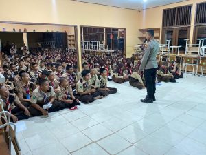 Bengkayang, Sungai Raya Kepulauan - Bripda Anang anggota Bhabinkamtibmas Polsek Sungai Raya Kepulauan melaksanakan himbauan kepada anak-anak pramuka untuk bersama-sama