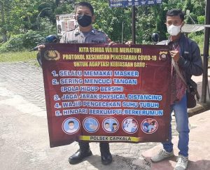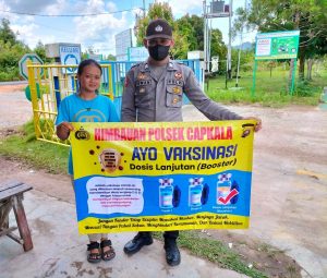 Polsek Capkala - Personil Polsek Capkala Polres Bengkayang Polda Kalimantan Barat Brigadir Irwan Suganda memberikan edukasi dan himbauan tentang Vaksin