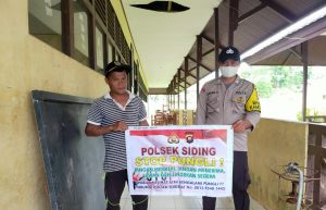 Anggota Polsek Siding Polres Bengkayang Polda Kalbar saat mensosialisasikan Peraturan Presiden nomor 87 tahun 2016 tentang Satuan Tugas Sapu Bersih