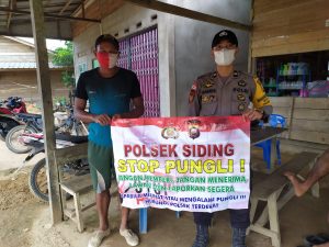 Personel Polsek Siding saat mensosialisasikan Peraturan Presiden nomor 87 tahun 2016 tentang Satuan Tugas Sapu Bersih Pungutan Liar atau Satgas