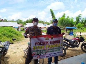 Personel Polsek Siding saat mensosialisasikan Peraturan Presiden nomor 87 tahun 2016 tentang Satuan Tugas Sapu Bersih Pungutan Liar atau Satgas
