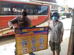 Bhabinkamtibmas Polsek Ledo Polres Bengkayang Polda Kalbar, Briptu Tan Deden melaksanakan kegiatan sosialisasi tentang penerapan Adaptasi Kebiasaan Baru (AKB) kepada
