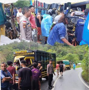 Personel Polsek Sungai Betung setelah mendapatkan informasi telah terjadinya laka lantas, mendatangi TKP di Jalan poros Sungai Betung โ€“ Bengkayang