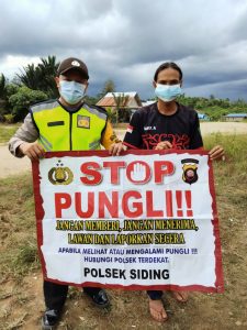 Personel Polsek Siding, Polres Bengkayang, Polda Kalbar, mensosialisasikan Peraturan Presiden nomor 87 tahun 2016 tentang Satuan Tugas Sapu Bersih Pungutan