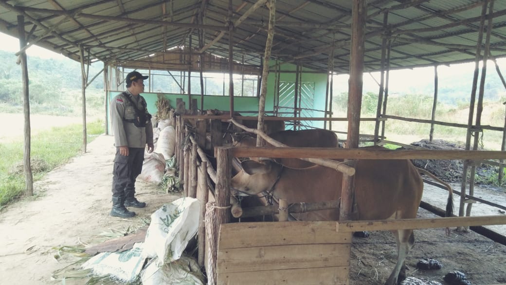 Pak Bhabin mendatangi kandang Pemilik hewan ternak,memberikan himbauan Terkait Pencegahan Penyebaran penyakit Mulut dan Kuku ( PMK ) Pada Hewan Ternak Sapi,yaitu kandang bapak Anes Dsn.Jaku Desa Bhakti Mulya.