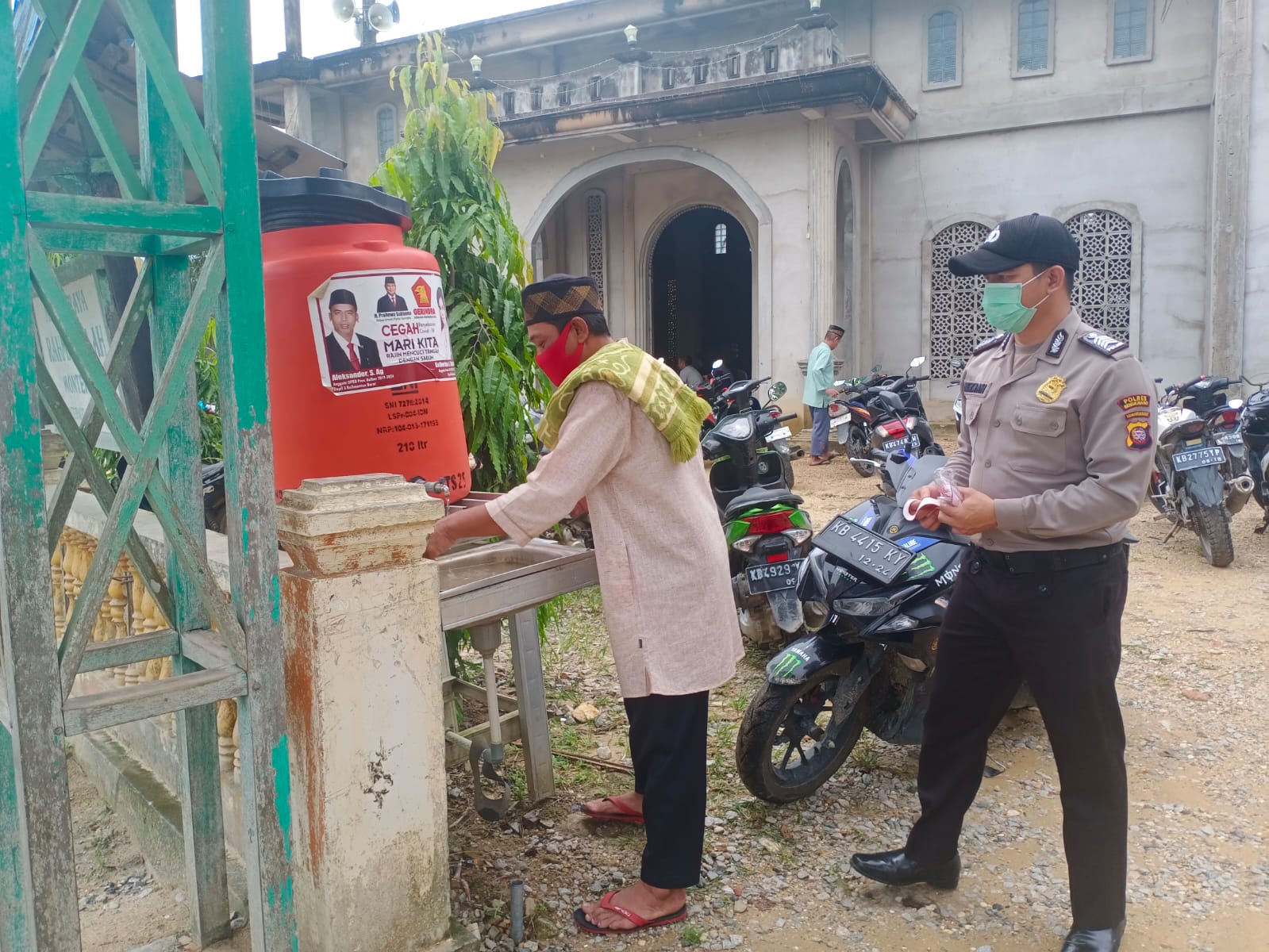 Dalam Pengamanan tersebut Personel Polsek Monterado Bripka Herman mengimbau warga di Mesjid Rahmatullah Desa Monterado agar menerapkan Protokol Kesehatan selama pelaksanaan Sholat Jumat.