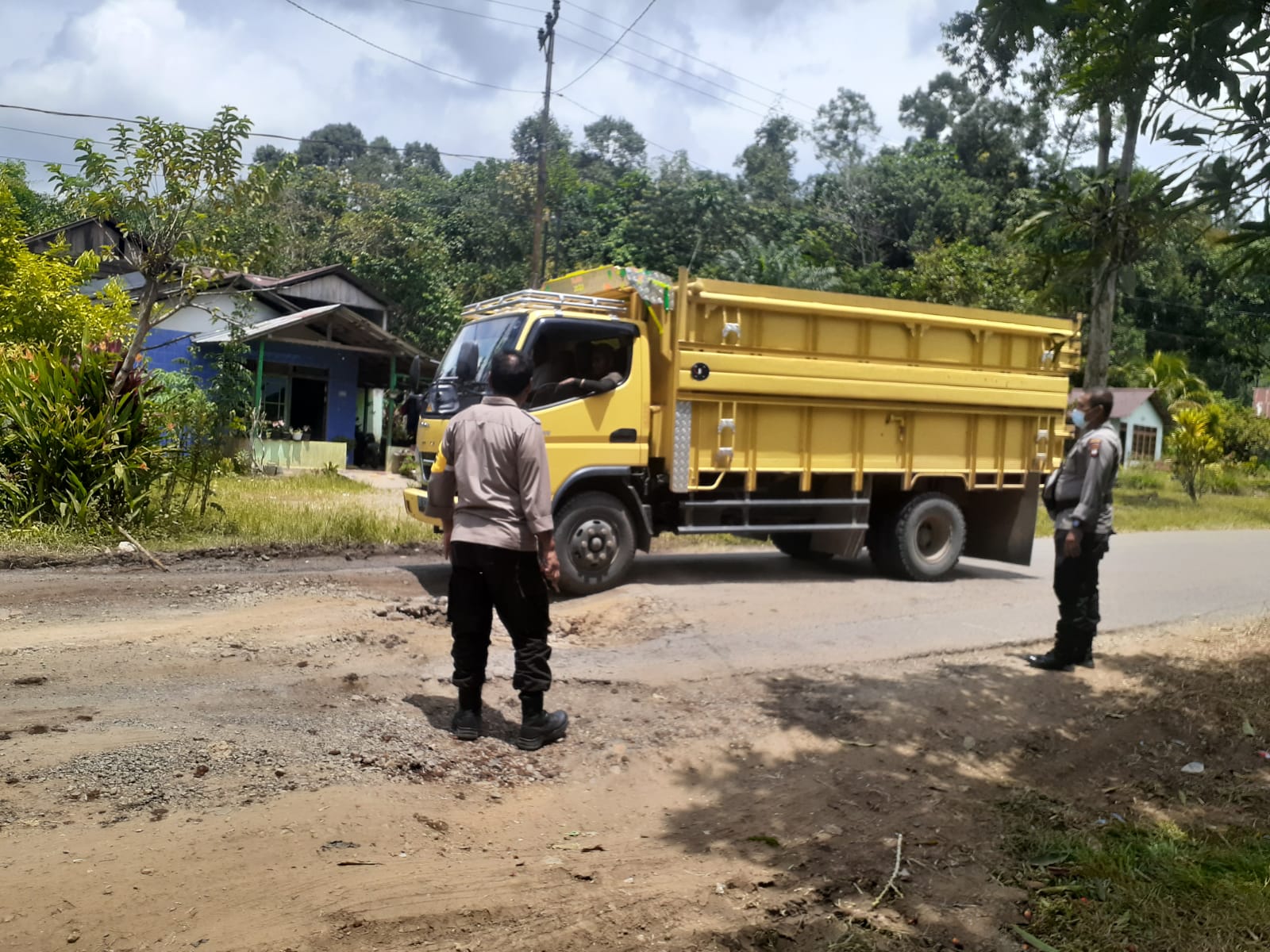 Sekitar pukul 11.00 Wib Kapolsek Ledo bersama anggotanya mengecek langsung ke Tkp dan mendapatkan informasi sudah banyak pengendara yang mengalami kecelakaan adanya jalan yg berlobang tersebut, pada saat kapolsek tiba dilokasi jalan sudah ditimbun oleh warga dengan menggunakan tanah hitam (kowari) secara gotong royong dengan tujuan pengendara yang lewat bisa aman melewati jalan tersebut.