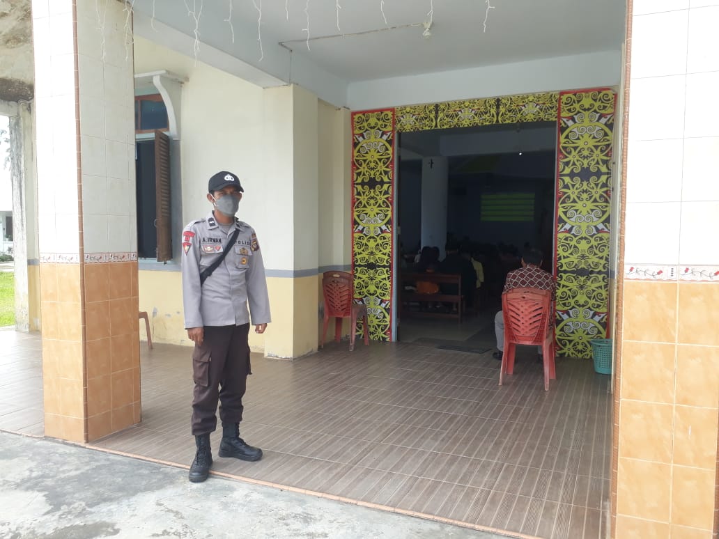 Polres Bengkayang – Polsek Samalantan. Anggota Polsek Samalantan Polres Bengkayang Polda Kalbar melaksanakan tugas pengamanan di Gereja Kalimantan Evangelis (GKE) Desa Samalantan Kecamatan Samalantan pada Minggu tanggal 17 Juli 2022 pagi.