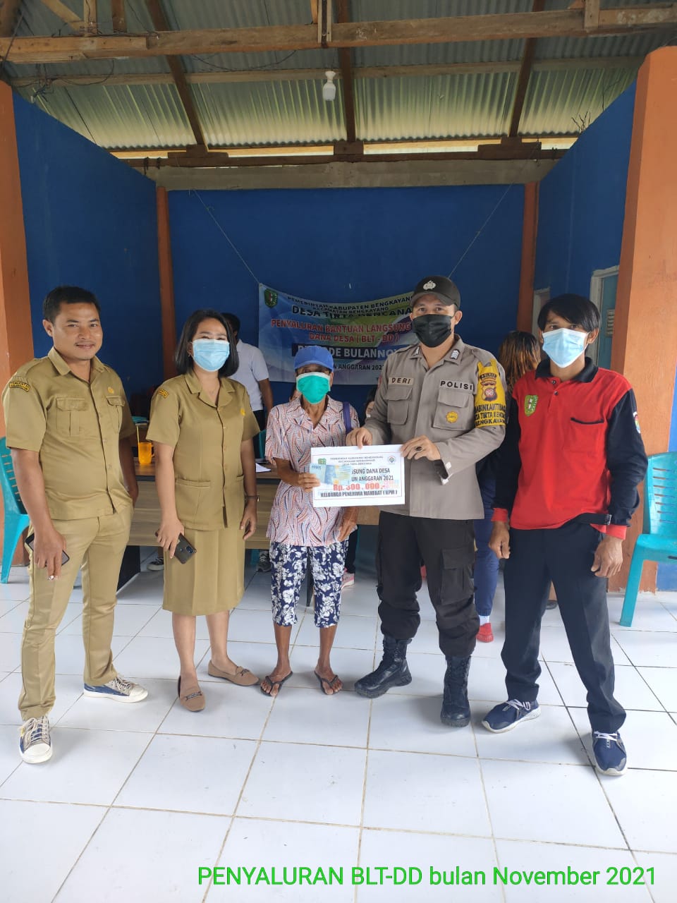 Bersama aparatur desa, Bripka Deri secara simbolis turut membagikan bantuan tunai sebesar Rp. 300.000 kepada masyarakat yang terdaftar sebagai penerima BLT DD tersebut.