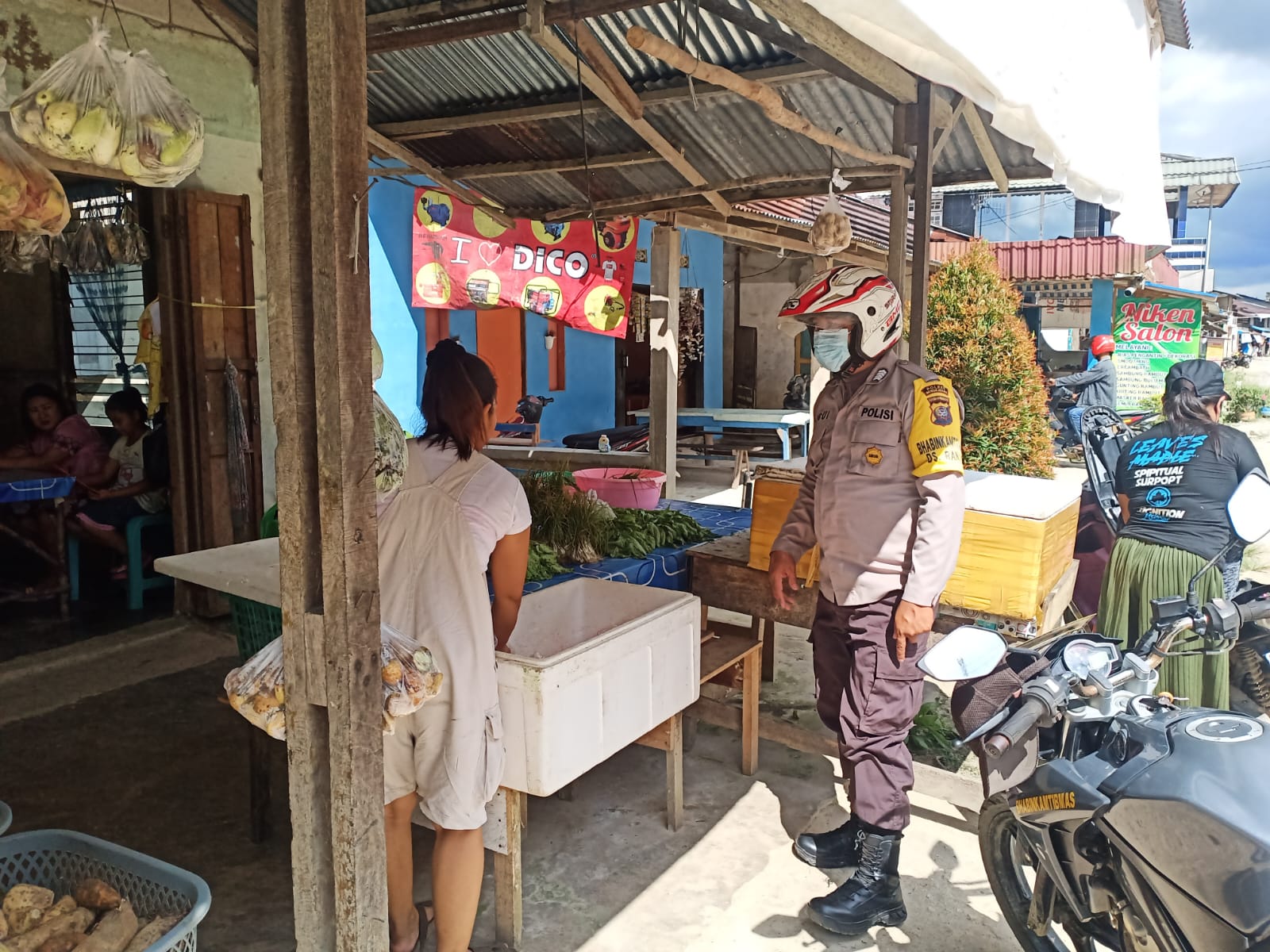 Polres Bengkayang, Polsek Monterado- Personel Patroli Polsek Monterado Bripka Abui bersama anggota jaga melaksanakan patroli dengan sasaran pasar dan tempat-tempat keramaian di wilayah Hukum Polsek Monterado Polres Bengkayang, Jumat (08/10).