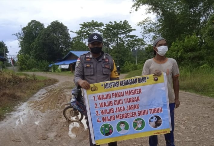 Kegiatan patroli dialogis yang dilakukan, disertai dengan himbauan kepada masyarakat terkait dengan protokol kesehatan pencegahan Covid-19 di Kecamatan Siding Kabupaten Bengkayang Provinsi Kalbar.