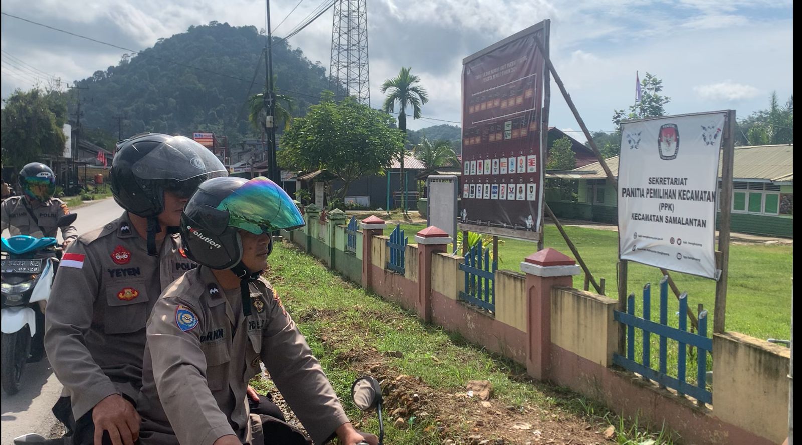 Dengan mengendarai ranmor roda dua, Ka SPKT Aipda Rustandi pimpin anggotanya menelusuri rute patroli. “Sasaran pertama kami menuju ke penyelenggara pemilu yaitu Sekretariat Panwaslu”, ungkapny. Jumpai Kristina anggota Panwaslu tim patroli koordinasi terkait pelanggaran pada masa kampanye yang berlangsung sejak tanggal 28 November. Hingga saat ini panwaslu, “belum ada (pelanggaran kampanye pemilu)”, cetus Kristina. Selanjutnya tim patroli yang beranggotakan Kanit Binmas Aipda Parmin, Aipda Turbesius Yeyen dan Bhabinkamtibmas Briptu Wahyu Prasetyo Wicaksono meluncur ke Sekretariat PPK Samalantan.