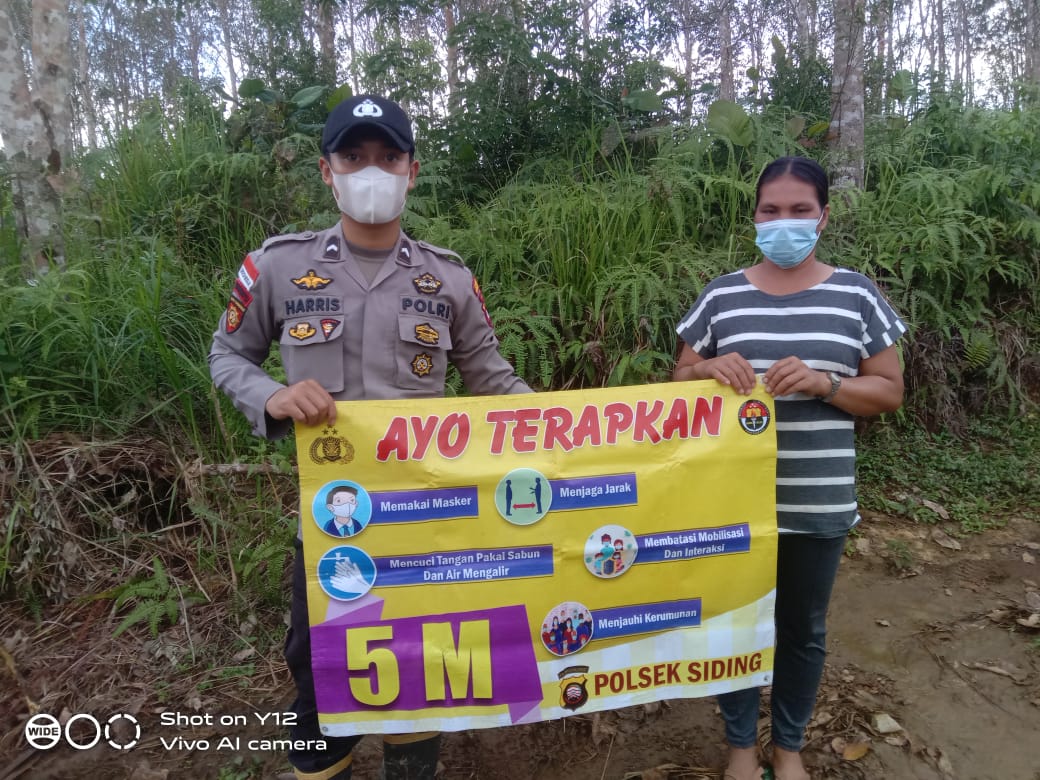 Disaat wabah virus corona yang sampai saat ini masih menjadi masalah di seluruh negara di dunia, anggota personel Polsek Siding terus berupaya melakukan pencegahan penyebaran Covid 19, salah satunya dengan memberikan himbauan kepada masyarakat serta membagikan masker kepada masyarakat yang tidak menggunakan masker.