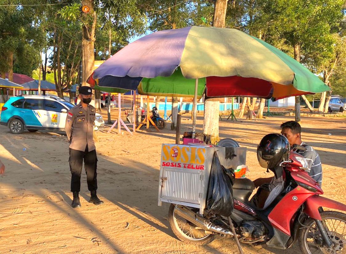 Anggota Polsek Sungai Raya Kepulauan Polres Bengkayang Polda Kalbar melaksanakan kegiatan patroli sambang keada pedagang kaki lima sampaikan himbauan kamtibmas dan tentang patuhi Prokes Covid-19, Minggu Siang(31/07/2022).