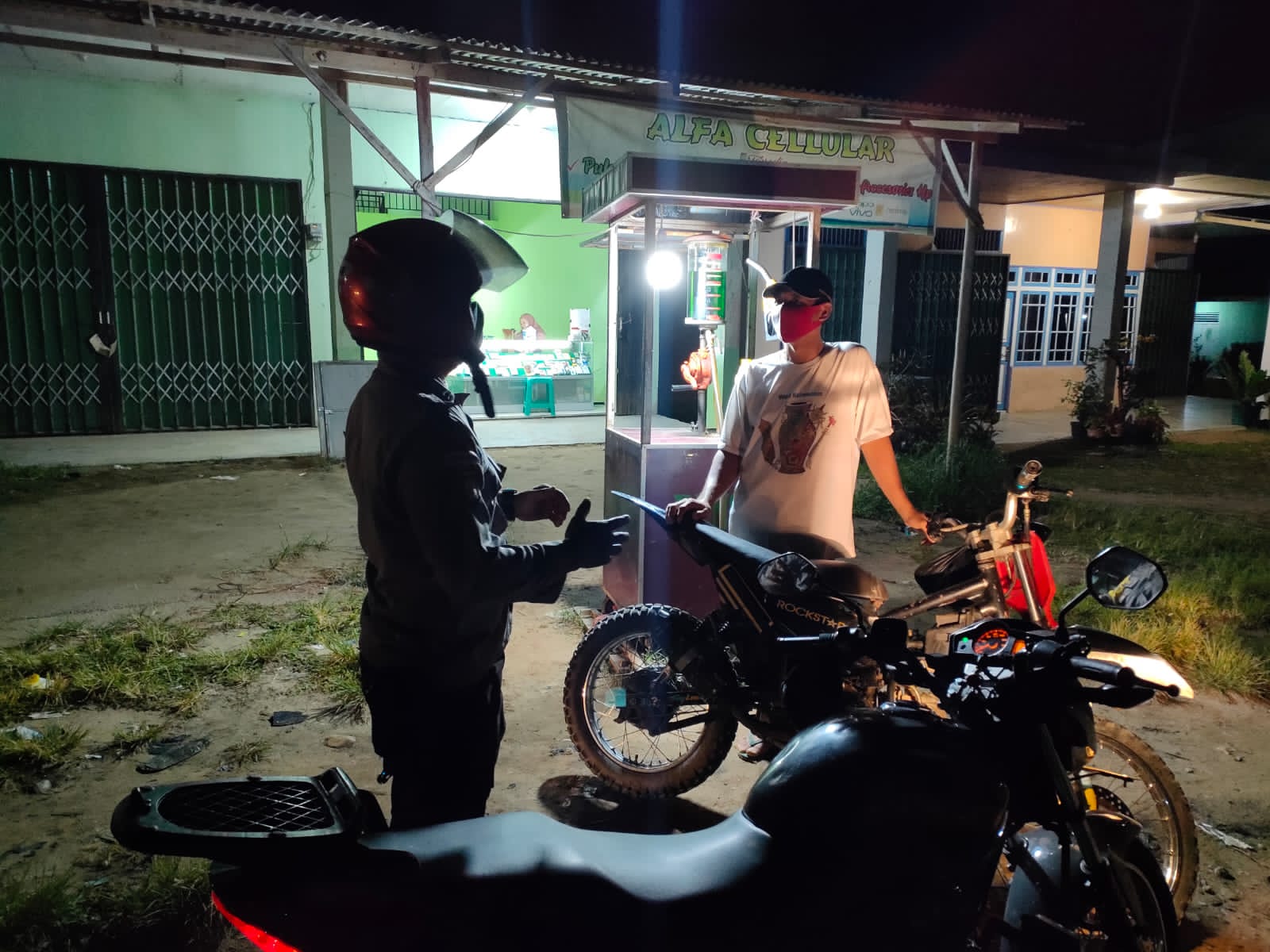 Saat melakukan Patroli malam, Bripka Pepel menghimbau ke warga yang dijumpai agar selalu menerapkan Protokol Kesehatan 5M untuk memutus mata rantai virus Covid 19.