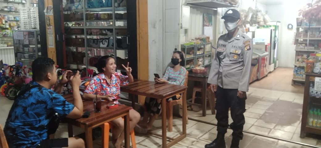 Selain mengawasi daerah rawan kamtibmas, patroli kali ini yang dipimpin Aipda Irwan juga menyambangi warga yang tengah berkumpul diwarung-warung, Minggu (26/9/2021) malam.