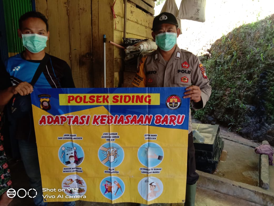 Anggota Polsek Siding Polres Bengkayang Bripka Bartolomeus menyambangi warga dengan cara, Melakukan edukasi / sosialisasi terhadap warga agar selalu menerapkan protokol kesehatan pencegahan penularan Covid-19 yakni dengan Menjaga jarak, Memakai masker dan Mencuci tangan serta menghindari kerumunan, Ungkap Kapolsek Siding Ipda Bambang Rudiyanto saat dikonfirmasi.