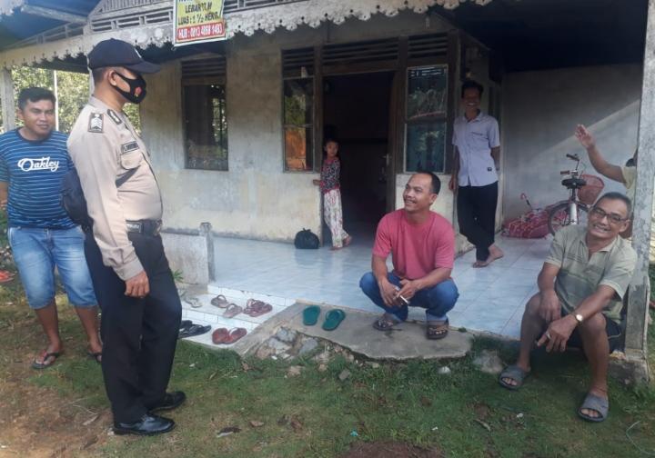 Tampak Personil Polsek Monterado Bripka Florentinus menghampiri warga menyampaikan himbauan Prokes 5M guna mencegah gangguan Kamtibmas lainnya di tengah pandemi Covid19/Corona.