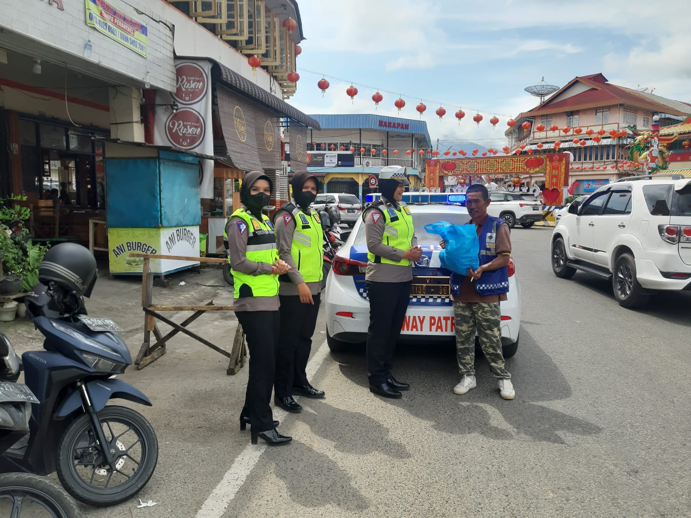 Dalam kegiatan Patroli Srikandi Sat Lantas Polres Singkawang dipimpin oleh Ipda Fristda Brighyta, S.Tr.K, Bersama beberapa Polwan lainnya berkeliling dengan menggunakan Kendaraan Mobil Patroli untuk memberikan Paket Sembako kepada warga masyarakat yang membutuhkan.