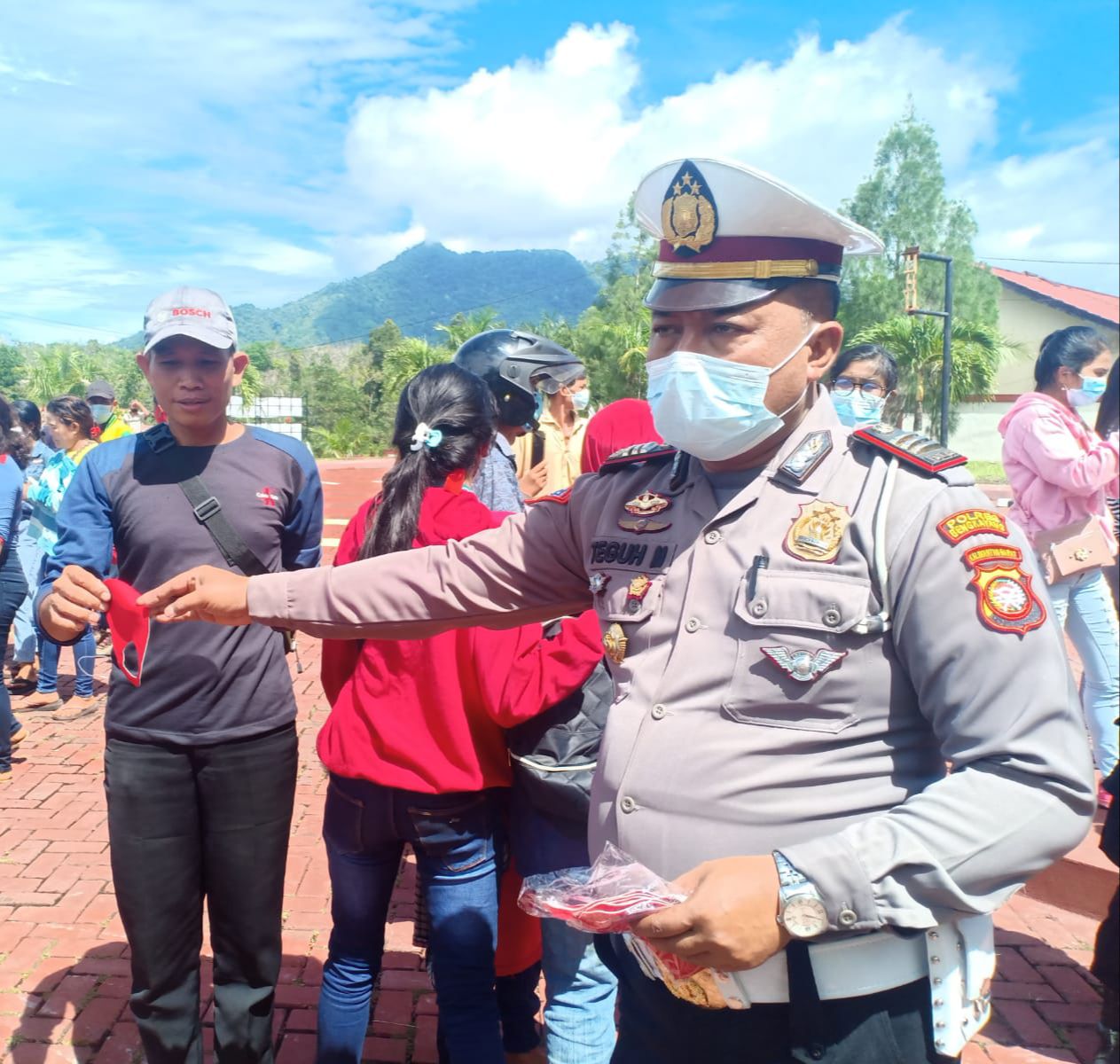 Bengkayang- Salah satu kegiatan Kasat Lantas Polres Bengkayang dan anggota dalam rangka Pencegahan penyebaran Covid 19 bagi masyarakat Bengkayang yaitu melakukan Pembagian masker gratis kepada masyarakat yang tidak menggunakan masker.