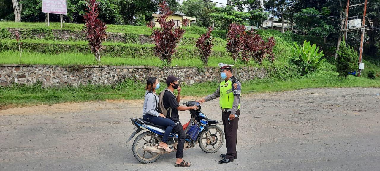 Dengan sangat ramah dan humanis Personil Satlantas Polres Bengkayang Aipda Wiryanda memberikan pengetahuan tentang tertib berlalu-lintas dan menghimbau kepada pengendara sepeda motor bahwa pada saat berkendaraan walaupun jauh dekat wajib pakai helm SNI, melengkapi perlengkapan dan surat kendaraan serta gunakan masker. ujar Aipda Wiryanda.