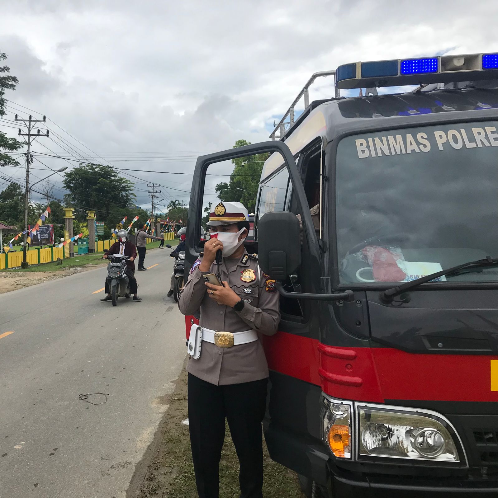 Bengkayang – Kanit Dikmas Lantas Polres Bengkayang Ipda Pariani memberikan himbauan kepada masyarakat pengguna jalan melalui penerangan keliling di Depan Mapolres Bengkayang Jalan Sanggau Ledo Bengkayang untuk mematuhi peraturan lalu lintas dan menerapkan protokol kesehatan guna mencegah penularan Corona Virus Disease (Covid-19). Selasa ( 17/08/2021 ).