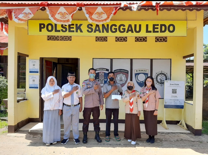 Dalam kegiatan tersebut Kapolsek Sanggau ledo IPDA Dwiyanto Bhanu Suailo S.I.P. melakukan pendampingan kepada adik-adik Saka Bhayangkara Binaan Polsek Sanggau Ledo.