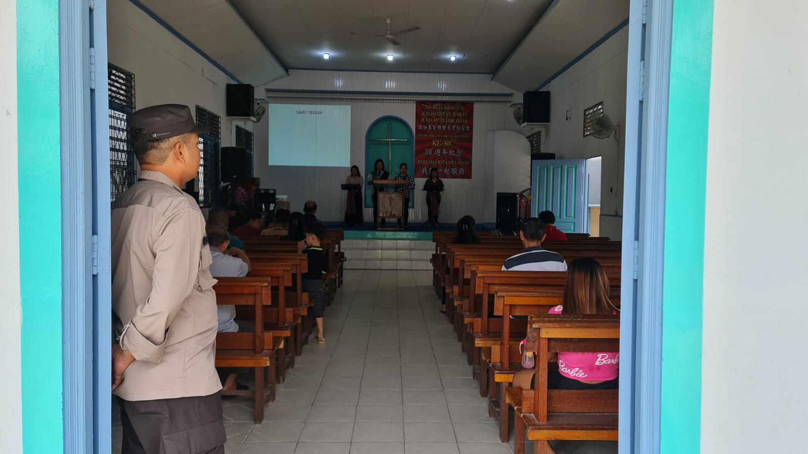 Pelaksanaan minggu kasih digelar kembali oleh anggota Polsek Sungai Raya Kepulauan Polres Bengkayang Polda Kalbar Bripka Petrus bersama anggota Guna menjalin silaturahmi dan komunikasi yang baik antara kepolisian dan para jemaat gereja,Minggu Pagi(24/09/2023).