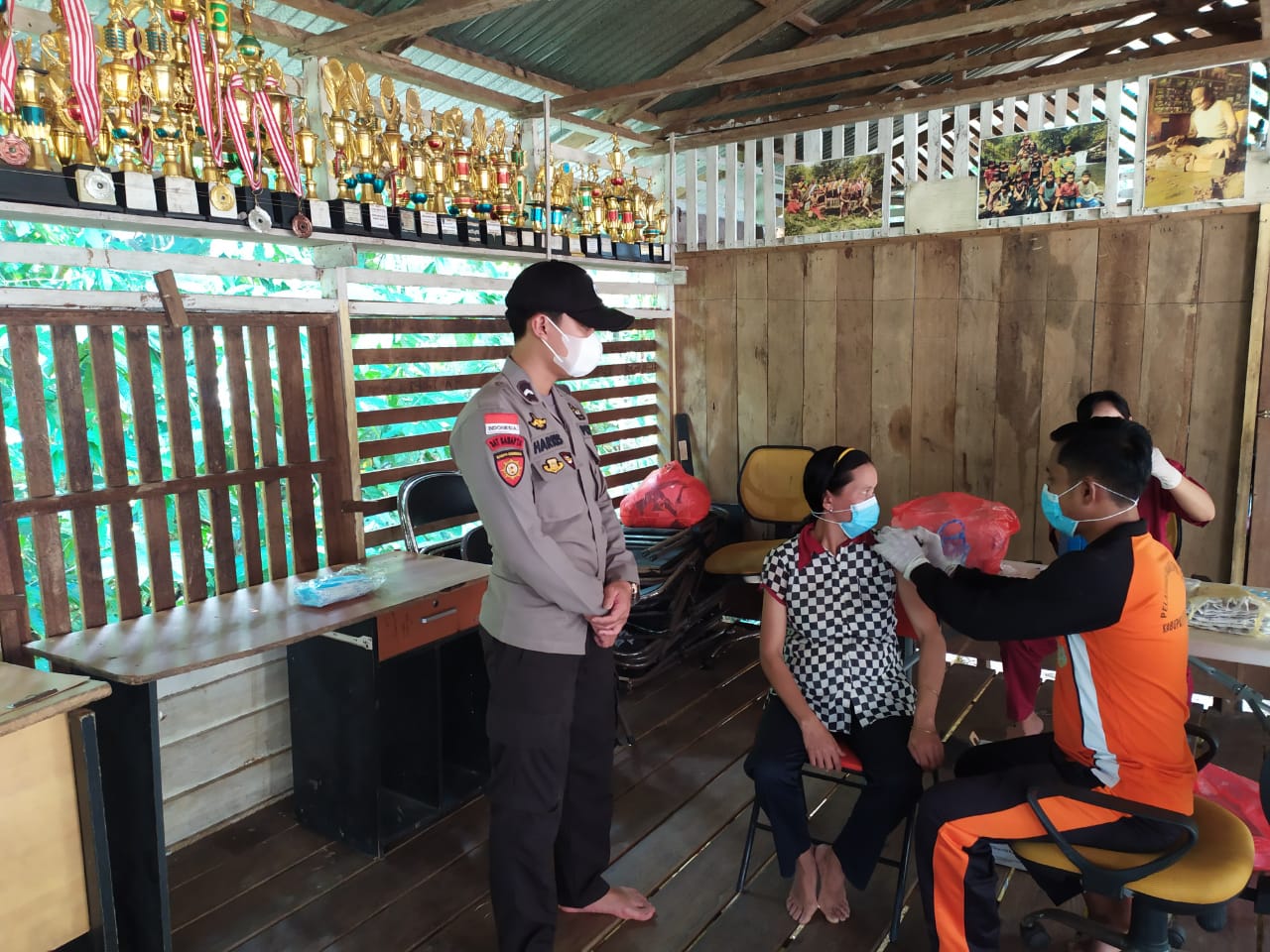 Polri Kawal kegiatan pelaksanaan Vaksinasi bertempat di Desa Sungkung 2, Kecamatan Siding, Kabupaten Bengkayang, Provinsi Kalbar, Kamis (28/04/2022).