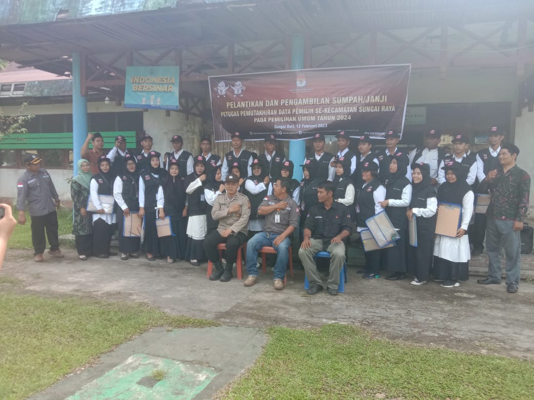 Pada hari Minggu tanggal 12 Februari 2023 sekira pukul 07.00 Wib di Halaman Kantor Camat Sungai Raya telah dilaksanakan Pelantikan dan Pengambilan Sumpah/Janji Petugas Pemutakhiran Data Pemilihan Se-Kecamatan Sungai Raya Pada Pemilihan Umum Tahun 2024.