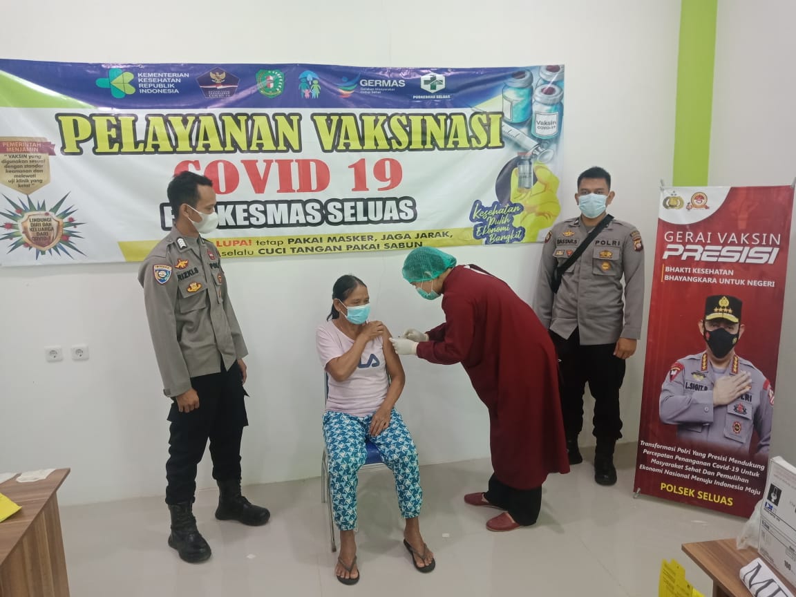 Kegiatan vaksinasi ini di berikan kepada Maayarakat Seluas yang sudah mendaftar di Polsek Seluas.kegiatan vaksinasi ini dalam rangka Hut Bhayangkara ke 75 Polri mengadakan Vaksin gratis kepada masyarakat. Vaksinasi ini diberikan kepada masyarakat Kecamatan Seluas bertujuan untuk membentuk antibody terhadap Virus Covid-19.