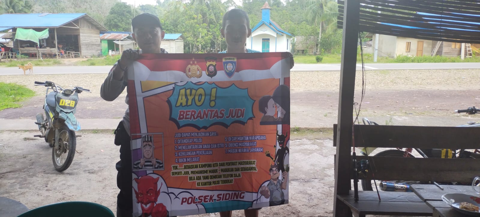 Personel Polsek Siding Polres Bengkayang Polda Kalbar beri himbaun masyarakat tentang stop Praktek Judi di wilayah kecamatan Siding. Jumat (10/02/23)