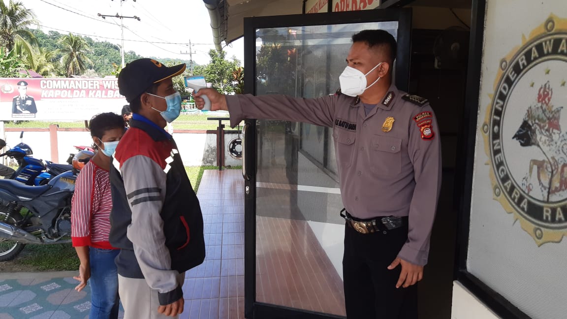Hal itu digelar dalam rangka meminimalisir penyebaran virus corona dengan cara mengecek setiap warga yang akan memasuki kantor Polsek Samalantan dengan serangkaian prokes covid 19.